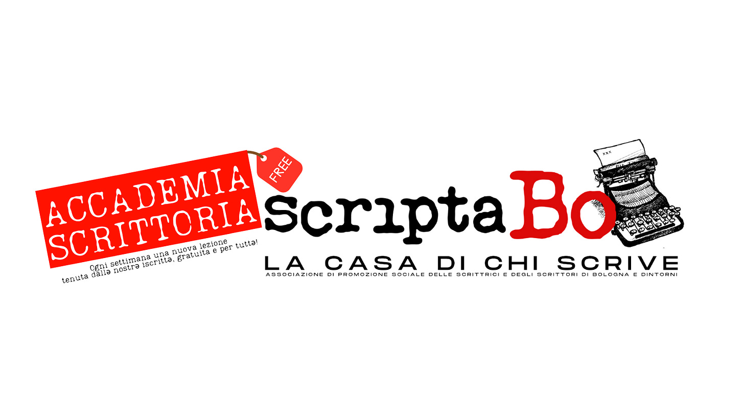 Il 25 gennaio 2024 partiranno i lavori dell'ACCADEMIA SCRITTORIA di ScriptaBo APS. Non solo un corso di scrittura, ma una serie di simposi in cui le scrittrici e gli scrittori di ScriptaBo si alterneranno per proporre una serie di lezioni verticali aperte a chiunque vorrà partecipare.